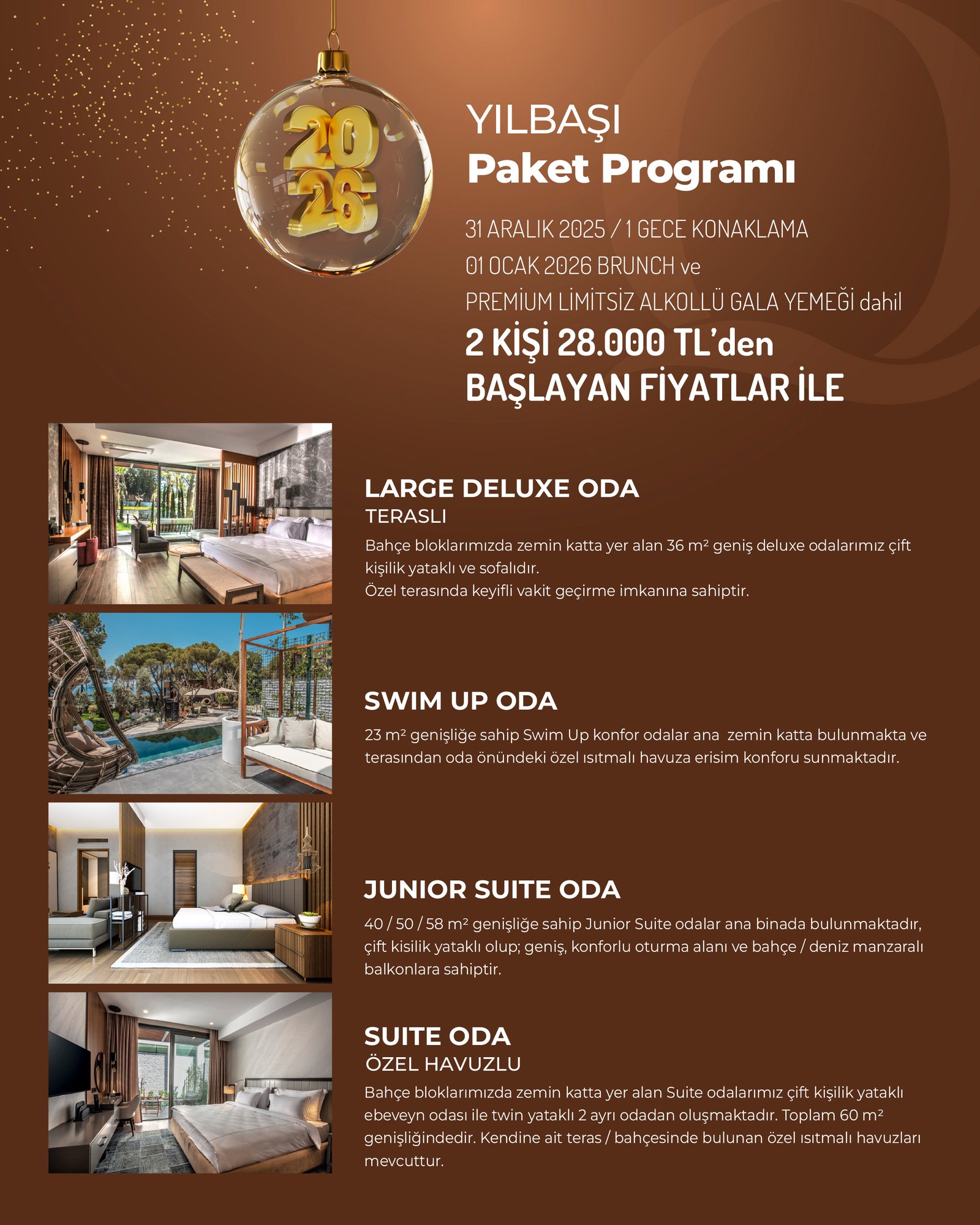 Farklı Konaklama Seçenekleri ile,Yılbaşı Hayaliniz;Sınırsız Eğlence, Olağanüstü Lezzet DeneyimleriyleZarif bir Ortamda Hayat Buluyor...